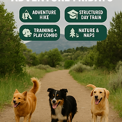 At Stay Wild Dogs, your furry friend will experience their dream day through personalized adventures designed for fun, learning, and connection. Every Friday, we host 4-hour adventures with options like Adventure Hike for freedom and exploration, Structured Day Train for focused learning, Training + Play Combo to build skills, or Nature & Naps for a slower pace. With convenient pick-up and drop-off, we ensure your dog receives premium care and exercise for a happy, balanced life. Love hard, train smart, and stay wild!